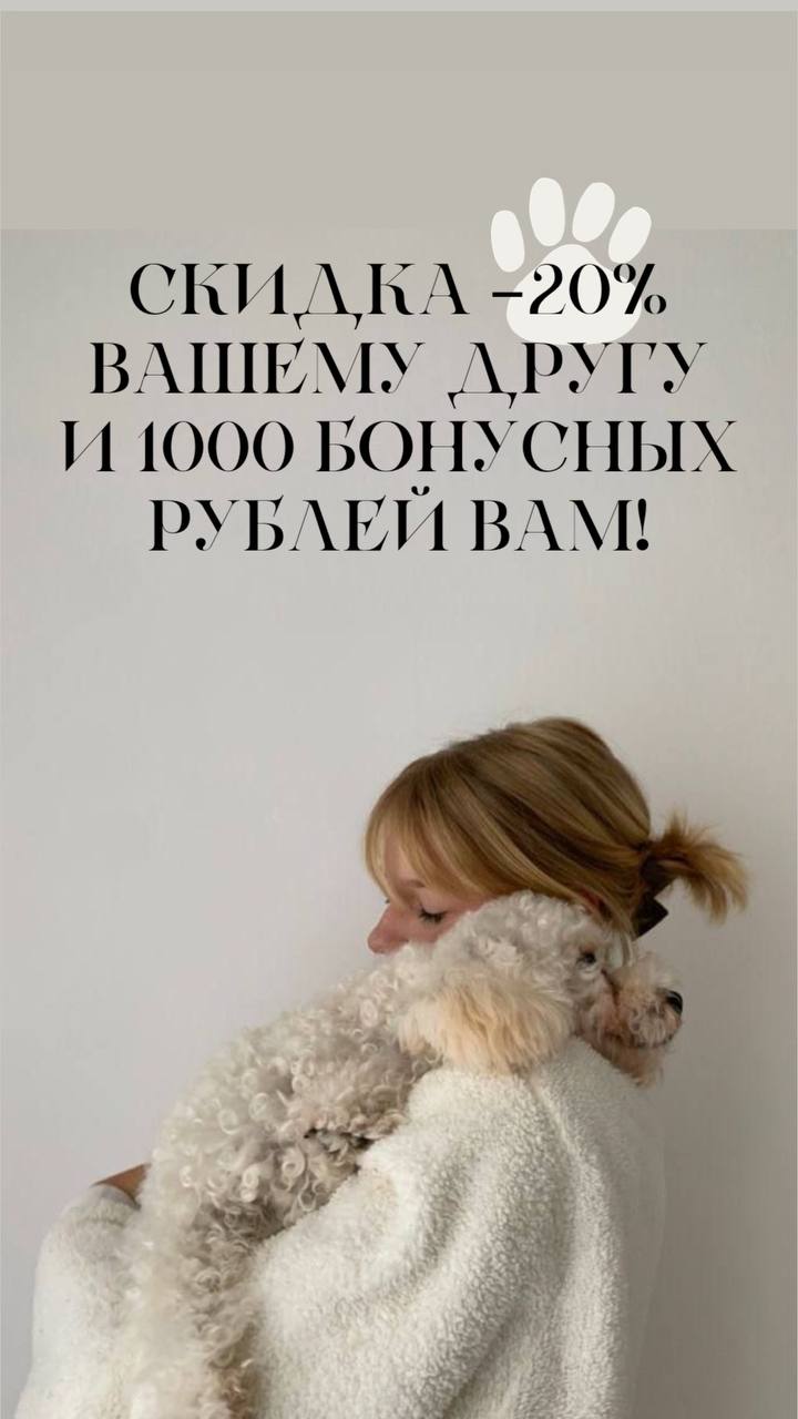 Мы всеми лапами за искренние рекомендации ! Если правда понравилась наша работа - почему бы не поделиться контактами хорошего грумера ) Профессионалы - это всегда дефицит ! Пригласи друга и получи 1000 барбербонусов, а другу с нас 20 % скидка за смелость попробовать что-то новое